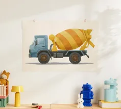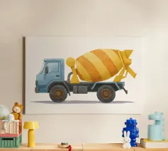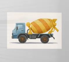 Con il suo tamburo di miscelazione a righe e la cabina celeste, questa betoniera sembra uscita dai sogni di un bambino. La sua silhouette chiara, i colori caldi e l'affascinante semplificazione la rendono protagonista di qualsiasi cantiere di fantasia. Un veicolo in movimento, anche da fermo. Per tutti coloro che amano i macchinari da costruzione, ma non dimenticano il lato ludico.