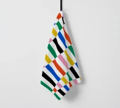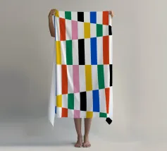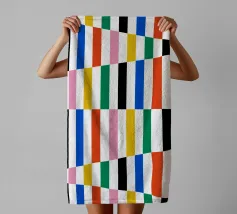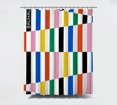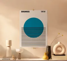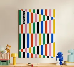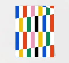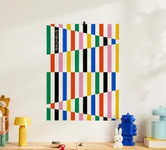 Questo espressivo design Bauhaus combina strisce di colore verticali e triangoli grafici per creare un quadro d'insieme ritmico ed energico. Linee chiare, colori vivaci e un gioco geometrico di movimento e struttura: un'opera d'arte moderna che illuminerà qualsiasi ambiente.