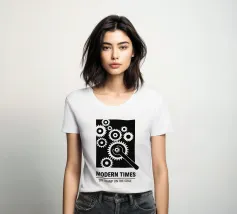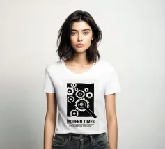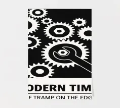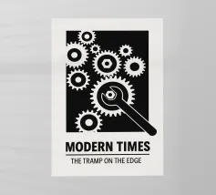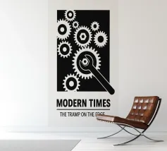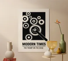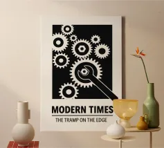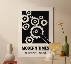 Stampa Modern Times, Poster cinematografico alternativo, Bianco e nero, Arte da parete minimale, Bulloni e ruote dentate, Linea di montaggio, Regalo per il papà, Cinefilia