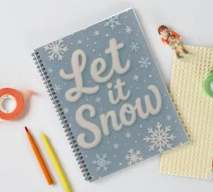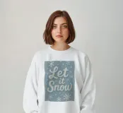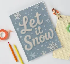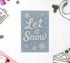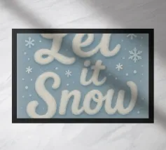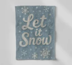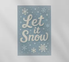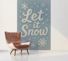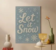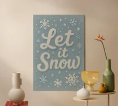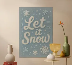 Un delicato disegno invernale di colore blu pastello con soffici scritte fatte a mano che recitano "Let it Snow". I fiocchi di neve e le texture morbide conferiscono all'opera un fascino caldo e confortante, ideale per gli amanti dell'arredamento invernale minimalista.