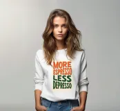 Un poster umoristico per tutti gli amanti della caffeina: "More Espresso, Less Depresso" porta il buon umore e una strizzatina d'occhio a qualsiasi parete. Con il suo aspetto disegnato a mano in arancione e verde scuro, è perfetto per la cucina, l'ufficio o il bar. Sia che si tratti di un regalo per i drogati di caffè o di un inizio di giornata motivante, questo poster è garantito per risollevare l'umore.