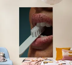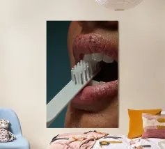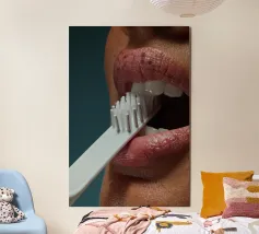 Questo design sorprendente cattura un primo piano di una donna con uno spazzolino da denti in bocca, incarnando la semplicità e la routine della vita quotidiana. Con un tocco moderno ed estetico, quest'opera d'arte fonde minimalismo e realismo, rendendola perfetta per chi apprezza la bellezza quotidiana. Ideale per gli amanti della cura di sé, della routine mattutina e per gli appassionati di arte contemporanea unica.