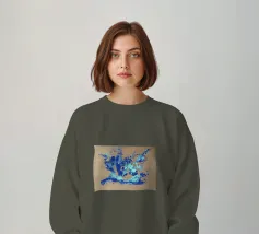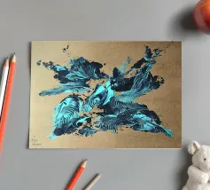 Quest'opera è realizzata su un foglio di cartone senza colorazione, lasciando visibili sullo sfondo le fibre di legno che la compongono. L'obiettivo è quello di presentare un'opera dipinta che mantenga un aspetto grezzo, offrendo un supporto che evochi la sua origine naturale. Il risultato è un'armonia e una maggiore facilità di integrazione in diversi stili di arredamento.