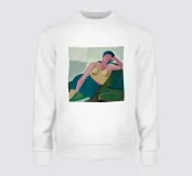 Un dipinto moderno in stile classico, che raffigura una persona che si riposa pensierosa. L'uso di luci e ombre sulla forma, unito alla posa rilassata, conferisce al dipinto una qualità artistica senza tempo.
