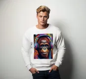 Sa cosa significa groove. Questo affascinante orango con cuffie oversize sembra essersi appena sintonizzato sulla sua jam preferita. Circondata da vivaci schizzi di graffiti, questa stampa fonde le vibrazioni della giungla con il fascino urbano. Un pezzo forte per spazi creativi, amanti della musica e interni moderni. La vostra playlist, visualizzata.
