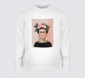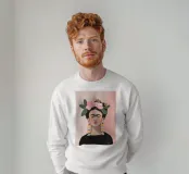 Questo affascinante ritratto di Frida Kahlo la ritrae con una colorata corona di fiori e orecchini floreali, in tenui colori pastello, e incarna la combinazione di arte messicana e femminismo.
