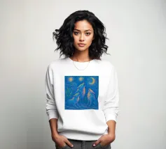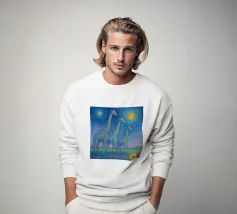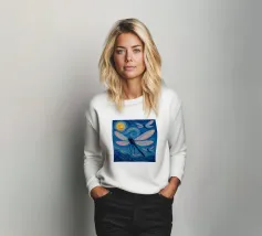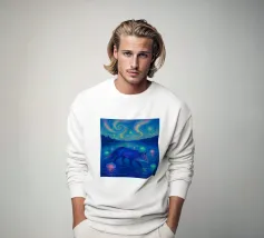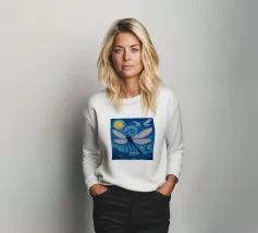 Questa incantevole opera d'arte raffigura una coppia di orsi polari che si ergono fieri sul ghiaccio alla deriva, sotto un cielo notturno luminoso e vorticoso. I blu freddi si fondono con morbidi riflessi dorati per creare un'atmosfera serena ma potente, che evoca la bellezza e la fragilità dell'Artico. Le pennellate strutturate conferiscono alla scena una profondità onirica, mentre il cielo luminoso aggiunge movimento e meraviglia. Perfetto per gli amanti della natura, per i collezionisti di arte naturalistica e per gli appassionati di paesaggi d'atmosfera, questo disegno porta calma, colore e ispirazione in qualsiasi spazio abitativo moderno o ambiente creativo.