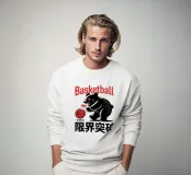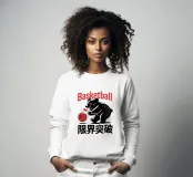 Dinamico disegno a tema basket con un feroce orso nero che palleggia una palla con ardente intensità. Ispirato alla cultura di strada giapponese, il kanji "限界突破" (Limit Break) cattura lo spirito di superare i limiti. Le linee audaci, l'energia aggressiva e la fusione culturale rendono quest'opera d'arte un punto di riferimento per le immagini di basket.
