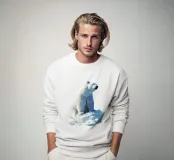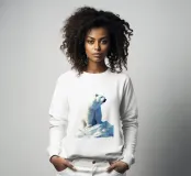 Appollaiato su un blocco di ghiaccio, il possente orso bianco guarda in lontananza, incarnando resilienza e solitudine. L'aria frizzante e la brina scintillante fanno da cornice alla sua potente presenza, mentre i blu e i bianchi profondi del paesaggio ghiacciato contrastano con la sua folta e maestosa pelliccia. Una visione suggestiva della bellezza artica.