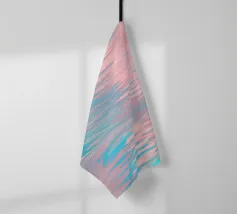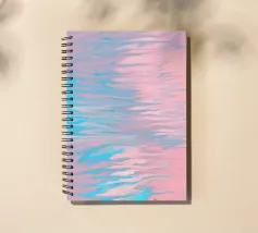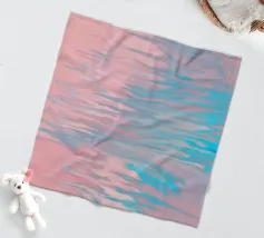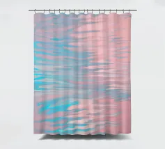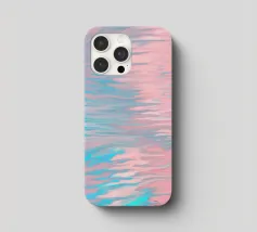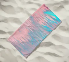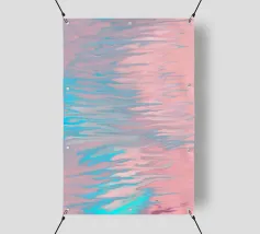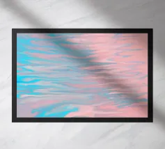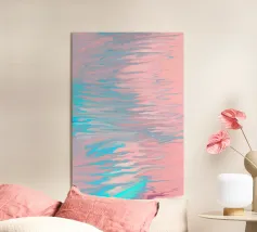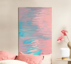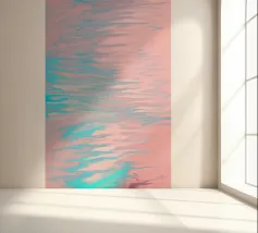 Splendida arte astratta fluida, ispirata a una tranquilla spiaggia rosa, con flussi di colore in blu acqua e rosa pastello.