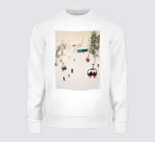 Un vivace motivo invernale: gli sciatori scivolano sulla pista mentre gli impianti di risalita rossi fluttuano nel paesaggio innevato. Con i suoi colori chiari e lo stile moderno, questo disegno porta il dinamismo sportivo e il fascino alpino in ogni casa. Perfetto per murales, tazze, cuscini o tessuti: un regalo ideale per gli appassionati di sci e gli amanti dell'inverno.