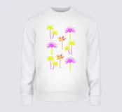 Splendido motivo di palme nei colori neon giallo e rosa su uno sfondo neutro beige latte.