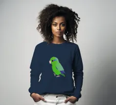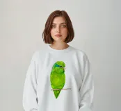 Acquerello di un pappagallino verde. Si appollaia comodamente su una zampa. I pappagallini sono i più piccoli.