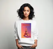 Un poster minimalista e vibrante che cattura tutta la magia di Parigi nell'ora d'oro. La Torre Eiffel si erge elegantemente su una gradazione di viola, rosa e arancione, evocando la poesia di un crepuscolo parigino. Perfetta per un arredamento urbano e chic, questa illustrazione modernizza l'icona francese con stile e morbidezza.