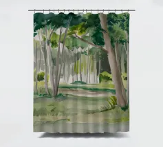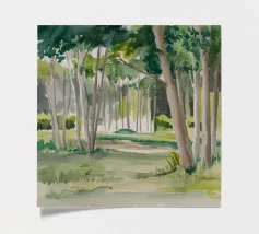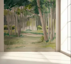 Una radura boschiva con luce soffusa e un'atmosfera tranquilla invita a una passeggiata meditativa nella natura.