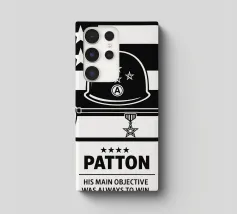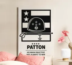 Stampa Patton, Poster cinematografico alternativo, Minimal, Arte da parete, Bianco e nero, Stampe di qualità, WW2, Medaglia dell'esercito, Bastone della spada, Regalo per i fan del cinema
