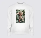 Frida Kahlo gusta il suo caffè in una tazza di fiori, circondata da elementi botanici e accenti floreali. Il suo autoritratto emana eleganza e stile boho, mentre i verdi tenui e i toni della terra sottolineano la sua bellezza naturale.