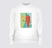 La simpatica illustrazione raffigura un peperoncino rosso con un'espressione arrabbiata e il fuoco nelle mani.