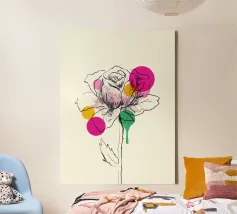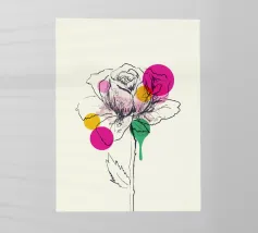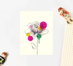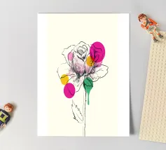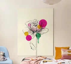 Questa graziosa illustrazione di una rosa sbocciata combina un'eleganza botanica senza tempo con un tocco giocoso e moderno. Il delicato schizzo è accentuato da vivaci cerchi astratti in rosa, arancione e giallo, che creano una miscela armoniosa di natura e minimalismo. Su un morbido sfondo beige, quest'opera d'arte dona calore, serenità e fascino contemporaneo: perfetta per spazi romantici, interni moderni o per chiunque apprezzi l'arte floreale con una prospettiva nuova.