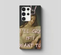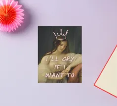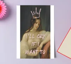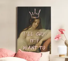 Abbracciate l'autenticità emotiva con "I'll Cry If I Want To", una toccante stampa pop art che combina la bellezza classica con una dichiarazione moderna e forte. Questa accattivante opera d'arte presenta una malinconica figura classica, elegantemente in posa con una sottile corona rosa disegnata a mano, con lo sguardo rivolto verso il basso in segno di introspezione. Il testo rosa acceso "I'LL CRY IF I WANT TO" sovrasta l'immagine, trasformando il ritratto senza tempo in una potente dichiarazione di auto-espressione e libertà emotiva. Perfetto per aggiungere un tocco di forza artistica e di elegante vulnerabilità a qualsiasi spazio moderno. Realizzato a un