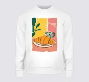 Un'affascinante natura morta di un croissant fresco su un piatto, abbinato a forme botaniche astratte su uno sfondo rosa. L'opera celebra il piacere semplice e delizioso di una colazione in stile parigino.