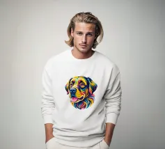 "Più persone incontro e più mi piace il mio cane" simpatico disegno di cane colorato