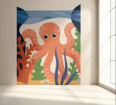 Godetevi questa adorabile illustrazione vettoriale con un allegro polpo nel mezzo di un bellissimo oceano.