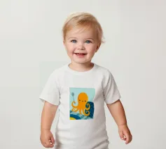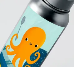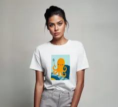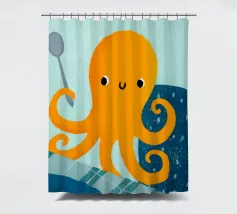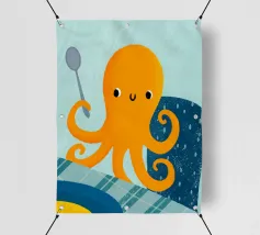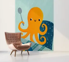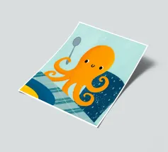 Illustrazione di un simpatico polpo arancione che tiene in mano un cucchiaio.