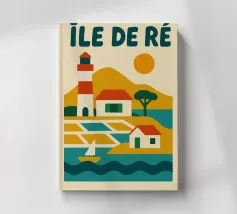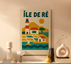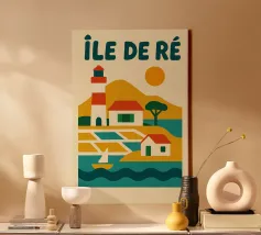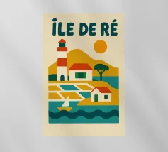 Lasciatevi sedurre da questo poster vintage dell'Ile de Ré, con il suo iconico faro, le case tipiche e i paesaggi marini. Un poster retrò e colorato che cattura tutta l'autenticità e la dolcezza di vita di quest'isola essenziale dell'Atlantico.