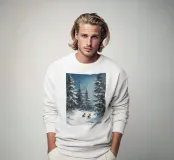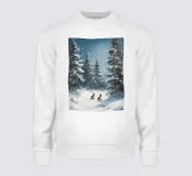 Idilliaco poster invernale con due conigli seduti in una foresta innevata. I fiocchi di neve che cadono dolcemente e i maestosi abeti creano un'atmosfera tranquilla e fiabesca. Questo murale combina motivi animali e natura invernale ed è perfetto per decorare il soggiorno, la camera da letto o la stanza dei bambini. Un'opera d'arte che porta la pace, l'intimità e la magia dell'inverno in ogni casa, ideale per gli amanti degli animali e della natura.