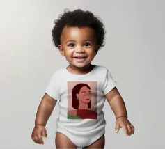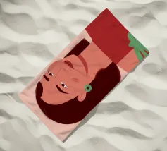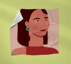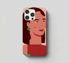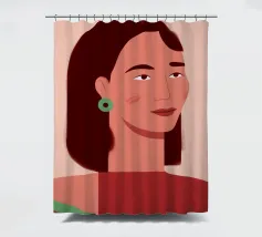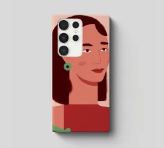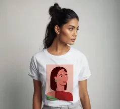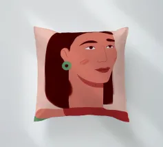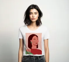 Un ritratto semplice e minimalista di una donna di profilo su uno sfondo rosa bicolore. La sua espressione è calma e il suo stile è pulito e moderno.