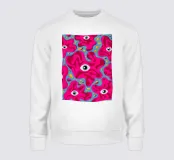 A mesmerizing and psychedelic pattern featuring repeating eyes amidst swirling, organic pink and magenta shapes. This bold and surreal artwork is both hypnotic and intensely energetic.