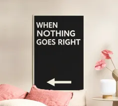 Questo manifesto va al cuore dell'umorismo e della profondità: "Quando niente va per il verso giusto..." - con una freccia che punta a sinistra. Ridotto, moderno e con un tocco affascinante, questo disegno è perfetto per l'ufficio, il corridoio o lo studio. Un promemoria per ricordare che a volte un nuovo percorso ha solo bisogno di una direzione diversa.