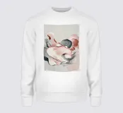 Un'opera d'arte astratta sensuale con toni morbidi e sfumati di rosa e grigio, che evocano forme organiche, simili a petali o corporee in una composizione delicata e avvolgente.