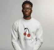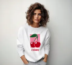 Un'illustrazione giocosa e minimalista con ciliegie rosse e un tocco di scrittura a mano. Semplice, fresca e piena di fascino, perfetta per aggiungere un tocco di colore a qualsiasi spazio.
