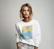 Questo design giocoso presenta un vivace mix di colori pastello e forme geometriche, evocando un'atmosfera nostalgica ma moderna.
