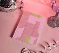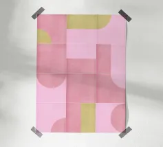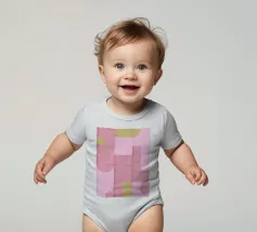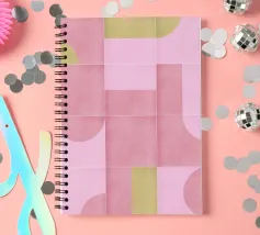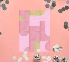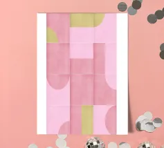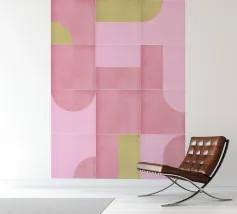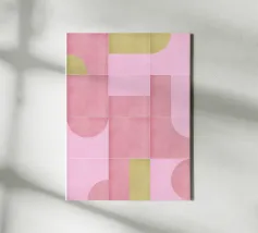 Questo design giocoso presenta un vivace mix di colori pastello e forme geometriche, evocando un'atmosfera nostalgica ma moderna.