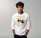 Un disegno in stile vintage di occhiali da sole arricchito da macchie di colore vivaci e gocciolanti. Un pezzo audace e stravagante per gli amanti della moda retrò e dell'arte pop.