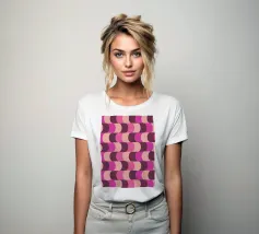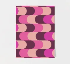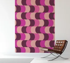 Un affascinante motivo retrò con semicerchi sfalsati in rosa, rosa e viola. Ispirato allo stile della metà del secolo scorso, questo disegno dona calore e nostalgia a qualsiasi casa: perfetto per murales, cuscini, cover per cellulari o articoli di moda.