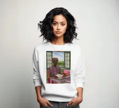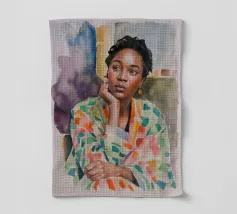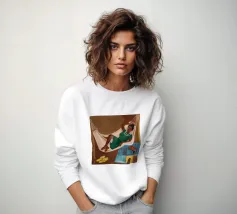 L'opera raffigura una persona seduta in casa, con indosso una vestaglia colorata. Le pennellate morbide e i colori caldi conferiscono alla scena un'atmosfera intima e accogliente.