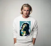 Ritchie Blackmore nello stile WPAP è rappresentato attraverso forme geometriche e colori vibranti e contrastanti che catturano la sua intensa personalità e la sua iconica presenza come chitarrista leggendario. Lo stile enfatizza gli angoli acuti e le aree di colore piatte, trasformando i tratti del viso, i capelli lunghi e l'espressione tipica del chitarrista in un'immagine pop-art di grande impatto che riflette sia la sua eredità rock che la sua energia artistica.