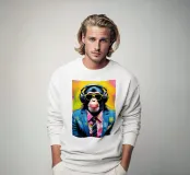 Quadro pop art - Scimpanzé caratteristico con accenti al neon Questo dipinto espressivo dona colore e umorismo a qualsiasi prodotto: i colori vivaci e lo stile giocoso rendono quest'opera d'arte un vero e proprio richiamo visivo.