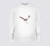 Disegno a matita colorata di un roadrunner maggiore. L'uccello è visto di lato, in modo che la sua lunga coda sia ben visibile nell'immagine.