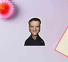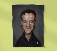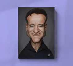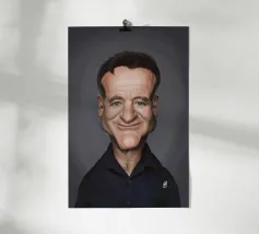 Caricatura umoristica del noto attore, star del cinema e comico americano Robin Williams. Una delle caricature realizzate per la serie Celebrity Sunday, in cui un personaggio famoso viene ritratto in un giorno. L'idea è di mostrarli come in una fototessera per avere coerenza.