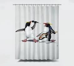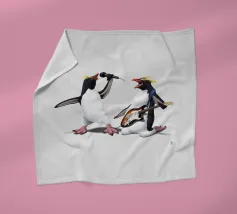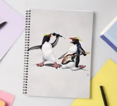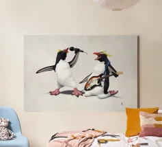 Illustrazione comica di una coppia di pazzi pinguini Rockhopper che si dedicano al riff che può riassumere la loro eredità rock e le loro vibrazioni musicali.