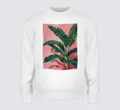 Un'illustrazione grafica e audace di grandi foglie di banano verdi su un vibrante sfondo rosa. La composizione è tropicale, moderna e ricca di stile energico e ad alto contrasto.