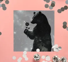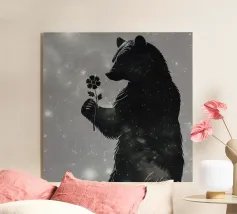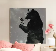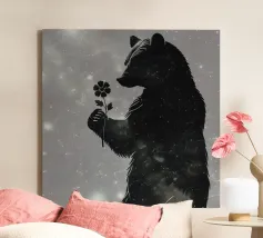 Questa incantevole opera d'arte mostra la silhouette di un orso che tiene delicatamente un fiore tra le zampe su uno sfondo stellato e mistico. L'armoniosa combinazione di buio, luce e natura crea un'atmosfera unica che invita a sognare. Un motivo perfetto per chi ama la magia della natura e degli animali.Sagoma di un orso con un fiore Atmosfera mistica con sfondo stellato Espressione della dolcezza e della forza della natura Gioco armonico di luce e oscurità Ideale per gli amanti della natura e per gli appassionati di illustrazione creativa