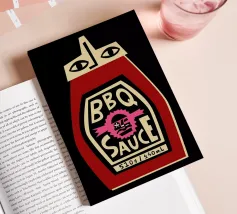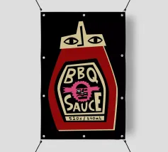 Un simpatico design per la salsa BBQ, perfetto per gli amanti del barbecue.