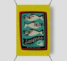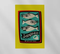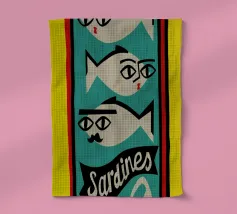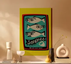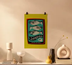 Stampa retrò di Fox & Velvet con sardine e pesciolini in scatola.