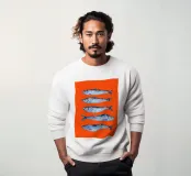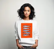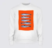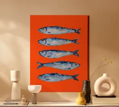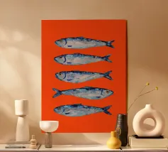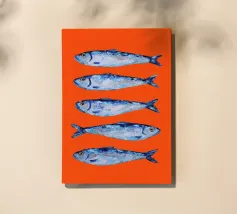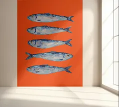 "Sardines on Orange" è un disegno vibrante e giocoso che mostra una disposizione sorprendente di cinque sardine, con una che nuota ribelle nella direzione opposta. Su un audace sfondo arancione, l'opera celebra l'individualità e il movimento, combinando un senso di nostalgia con un tocco di colore contemporaneo. Perfetto come stampa d'arte o come pezzo da indossare, dona un tocco di carattere e fascino a qualsiasi spazio o abbigliamento.